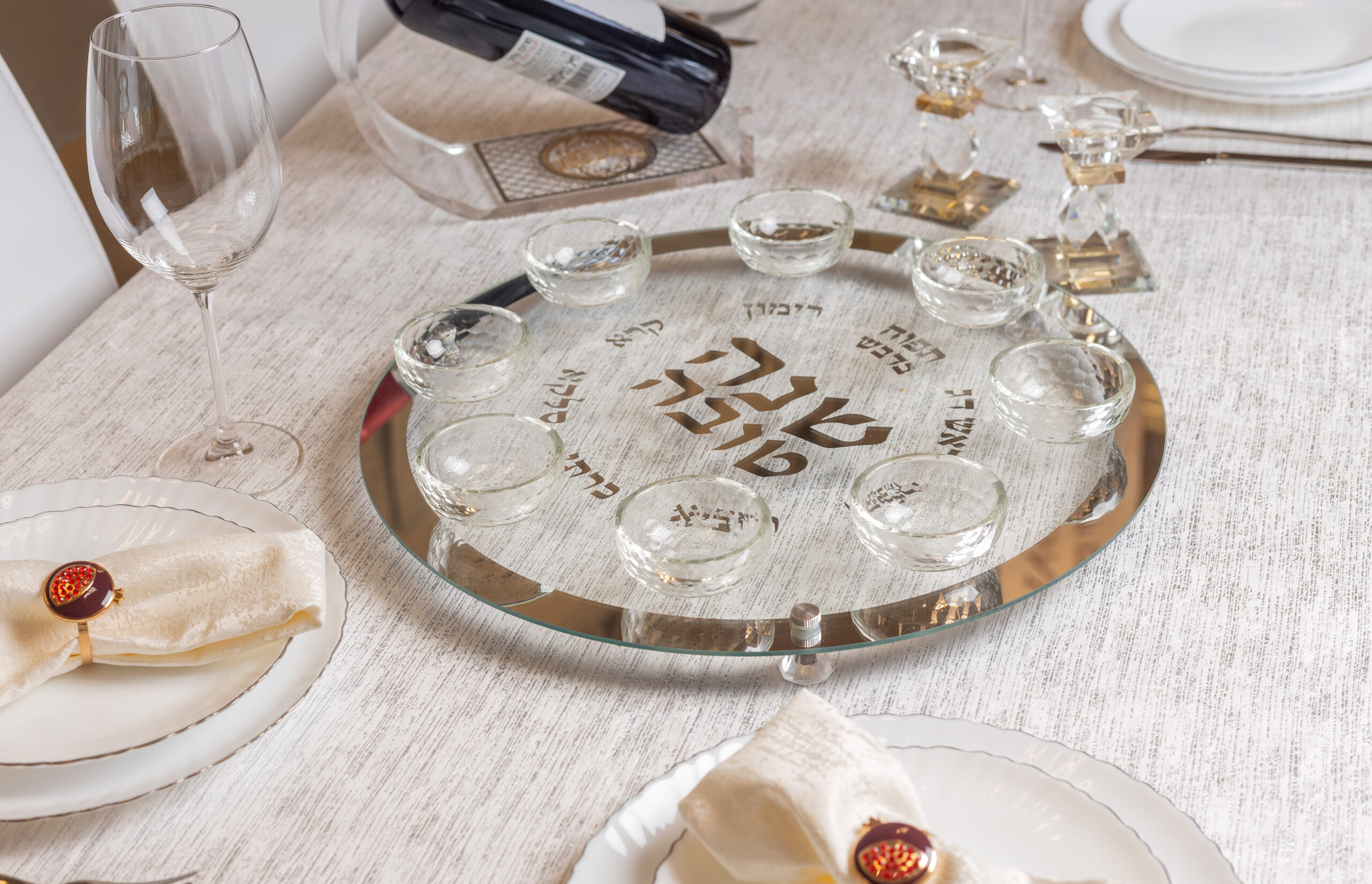 Rosh Hashanah Glass & Crystal Round Plate “Stones” 40 cm