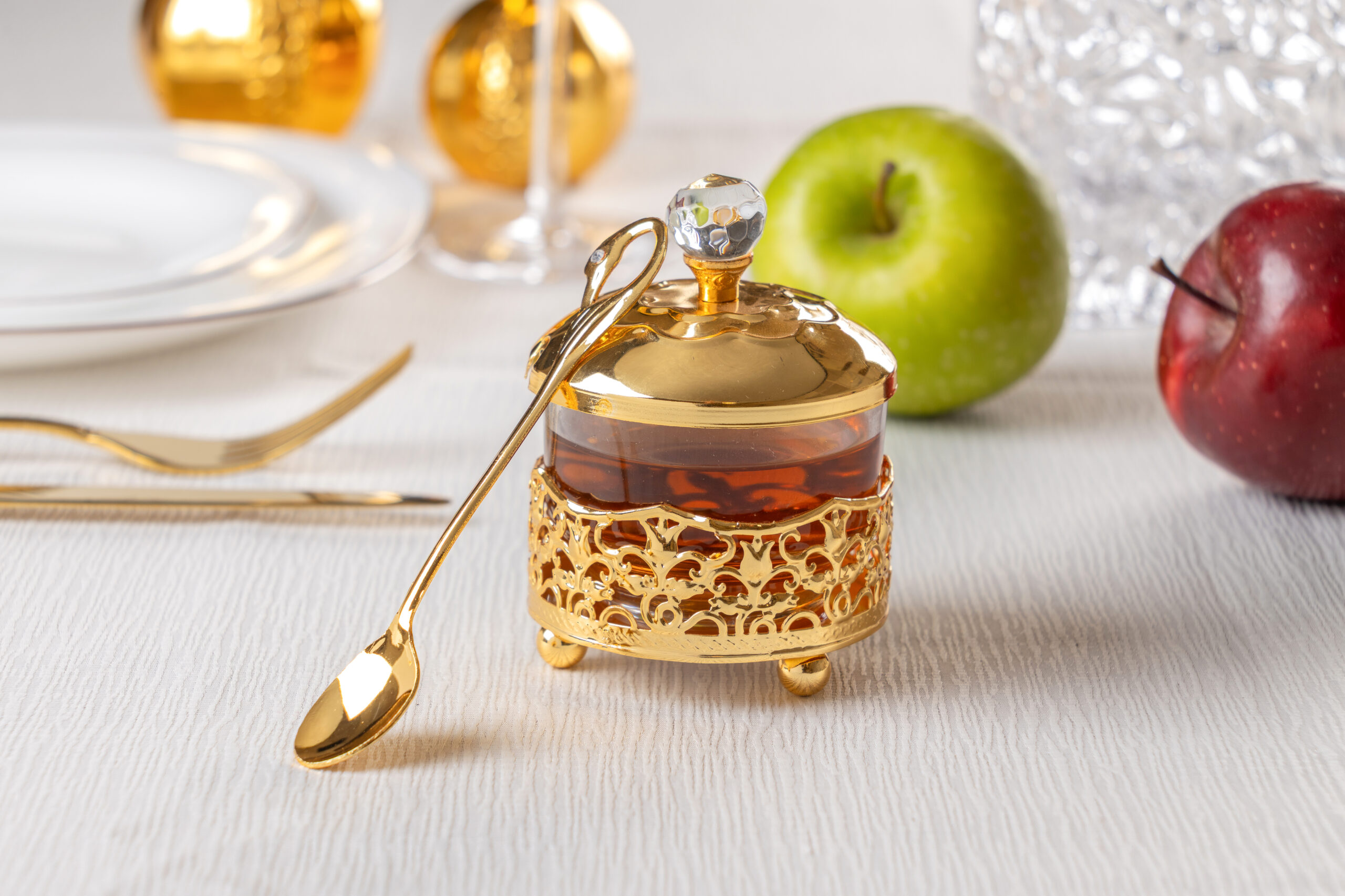 Golden Filigree Honey Dish, 10cm