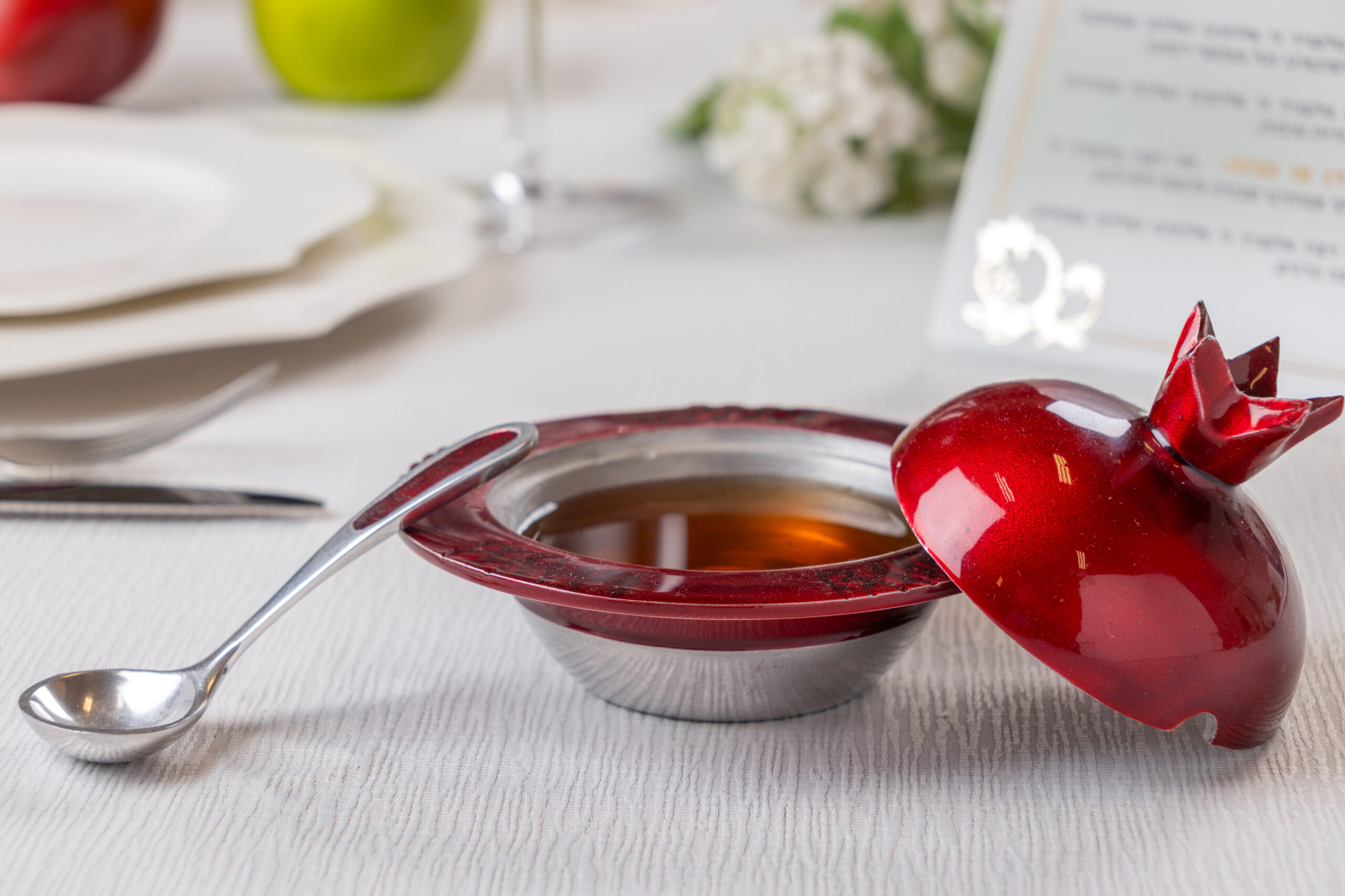 UK51835 – Aluminum Honey Dish Pomegranate, With Spoon 8x12cm