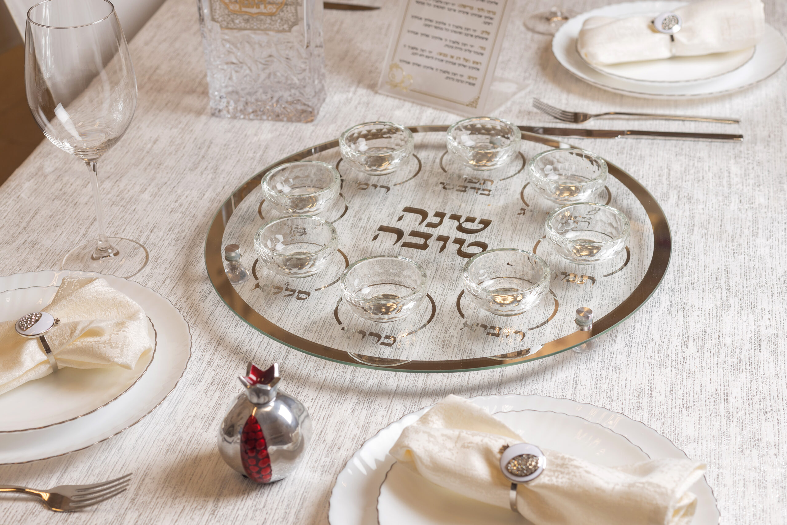 Rosh Hashanah Glass & Crystal Round Plate 40 cm